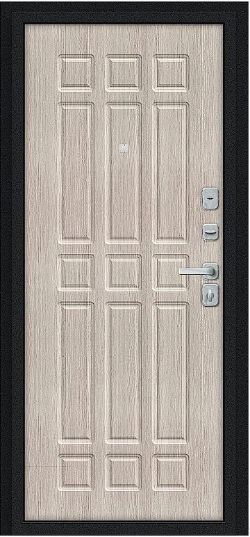 Надежная входная Дверь Браво Мило МФ/BChrome Букле черное/Cappuccino Melinga премиум класса по цене 33 499 руб. Большая толщина стали защитит от проникновения в ваш дом, квартиру или коттедж. Используется очень качественная фурнитура: замки, цилиндры, ручки, защелки. Покрытие и отделка двери изготовлено под внимательным контролем производителя. Дверь имеет долгий срок службы и гарантию.